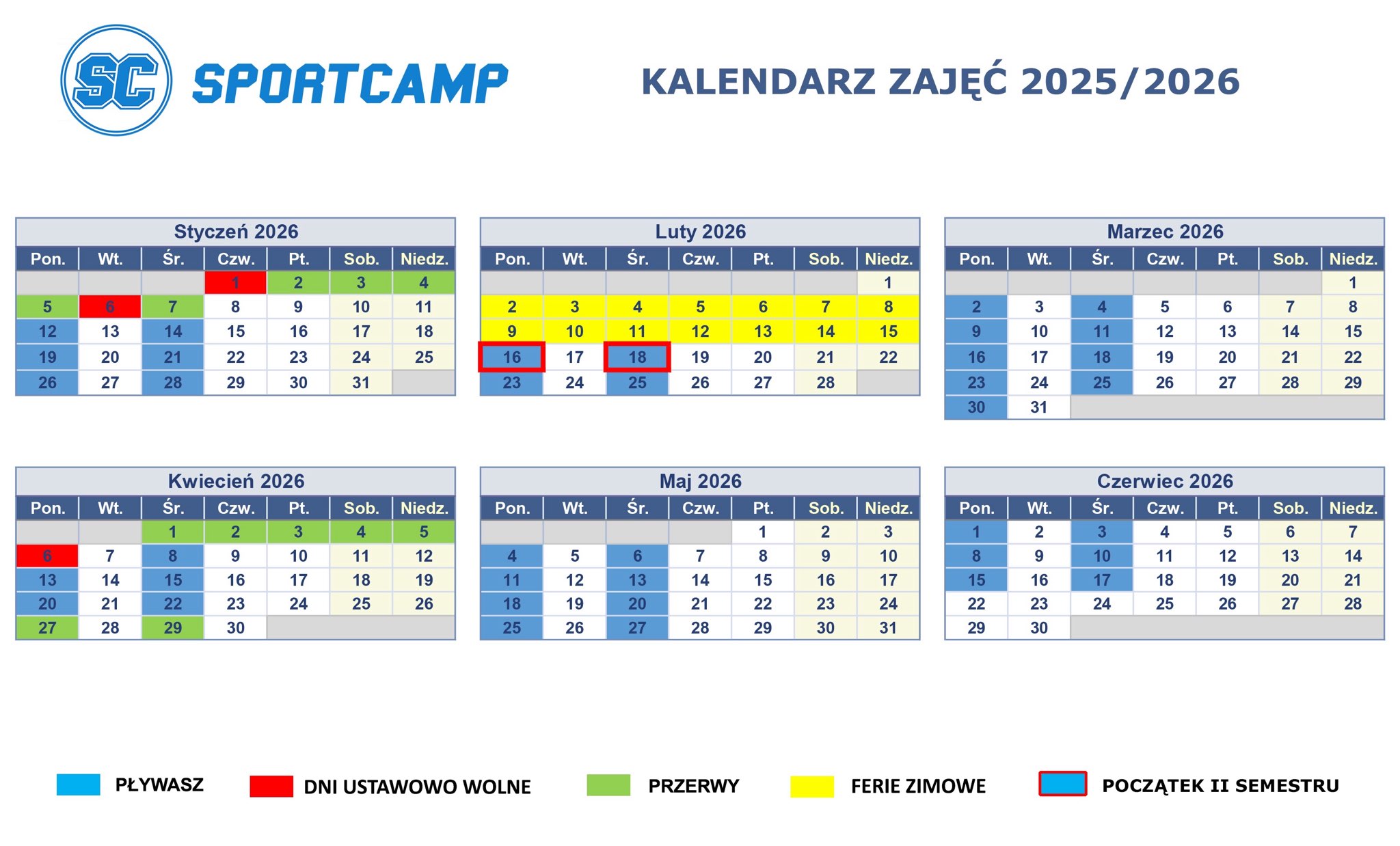 GODZINOWY HARMONOGRAM ZAJĘĆ PŁYWANIA